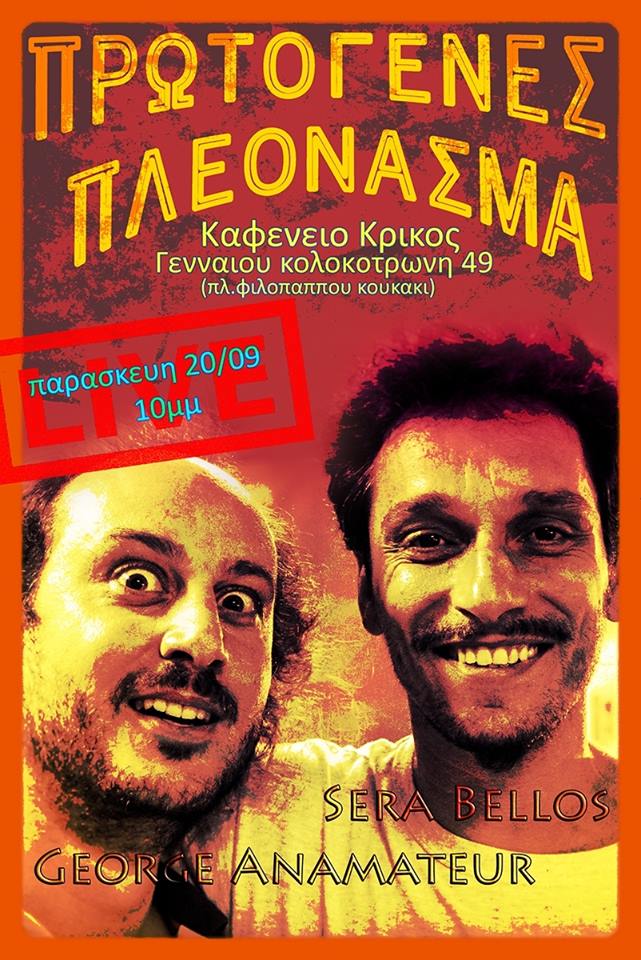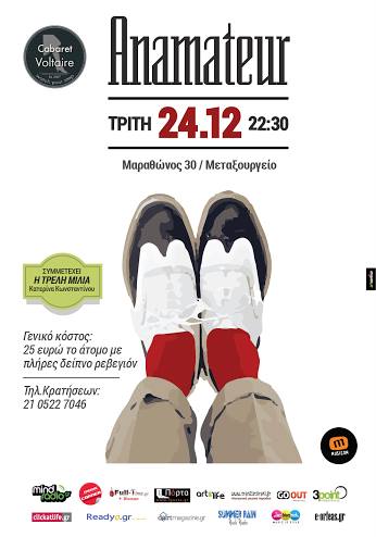 In the opening night for the new season, Anamateur will be a member of Dr. Bellos' house band, singing and playing piano, along with Konstantinos Stouraitis (g), Chrysostomos Boukalis (cb) and many other surprise guests.
