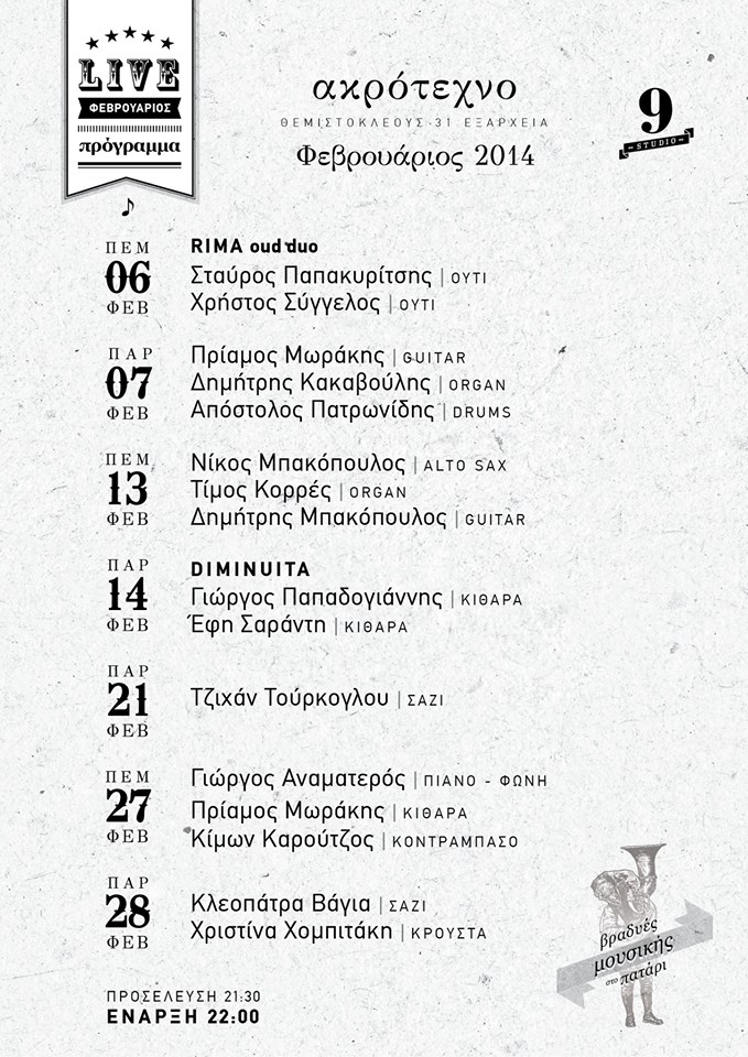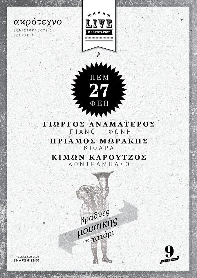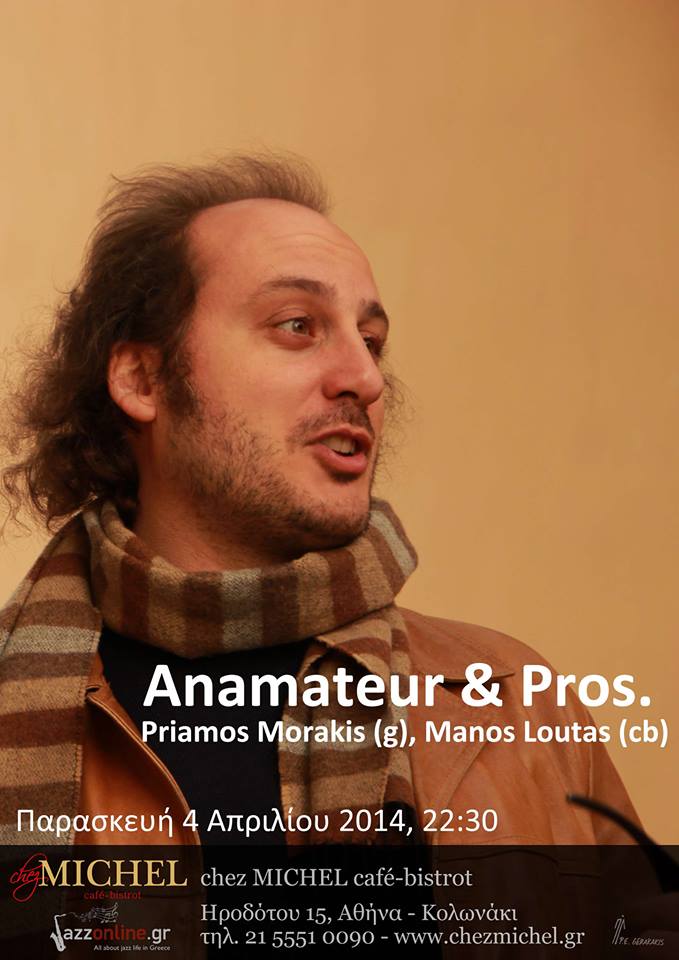 Anamateur reunites with Priamos Morakis (g) in order to appear to this cosy art place in Exarcheia. With them the young and talented Kimon Karoutzos on bass.