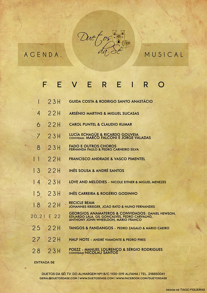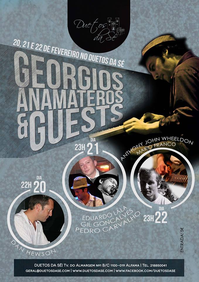 Anamateur returns in Lisboa and his beloved Lála's place "Duetos da Sé" for a three-days show! He'll perform unknown treasures by Cole Porter, Fats Waller and Thelonious Monk plus all his newest compositions, along with some very special friends: Daniel Hewson (p, tb) on Thursday the 20th, Eduardo Lála (tb) - Gil Goncalves (tub) - Pedro Carvalho (dr) on Friday the 21st, Mário Franco and Anthony John Wheeldon on Saturday the 22nd!!