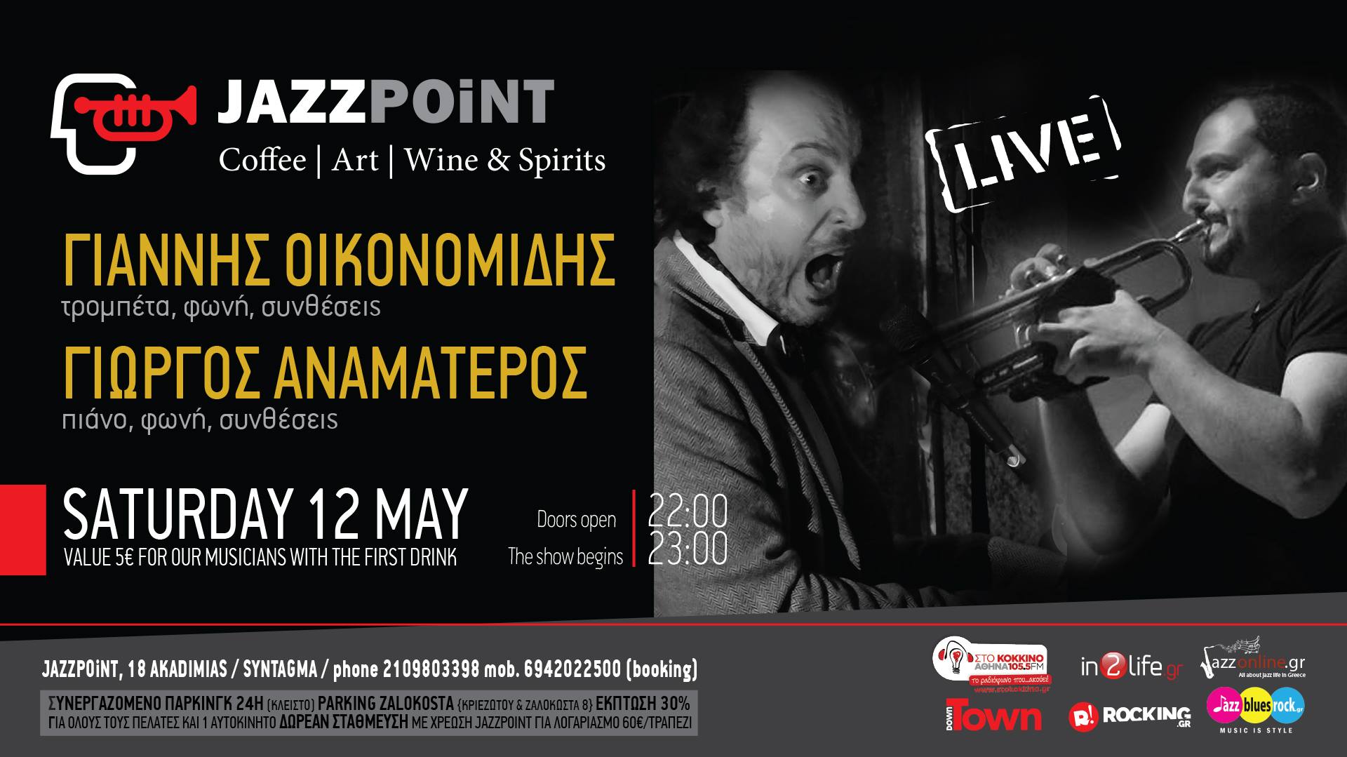 Two original performers of the Greek jazz scene, Yiannis Oikonomidis (tp) and Anamateur (p) meet at Jazz Point, in order to play and sing