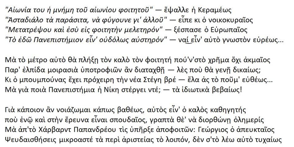 "Αἰωνία του ἡ μνήμη του αἰωνίου φοιτητοῦ" — ἔψαλλε ἡ Κεραμέως ("No more with the 'eternal student'" — sung Kerameos) (song © 2019)